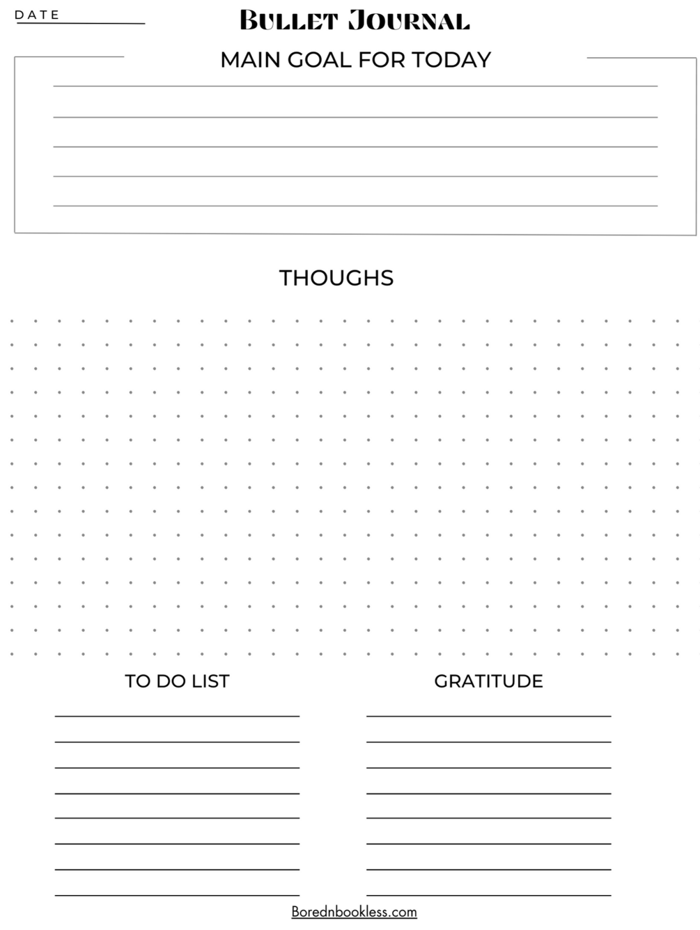 Single sheet Bullet Journal Template for Supernote A6x with goals, thoughts, to do list and gratitude section